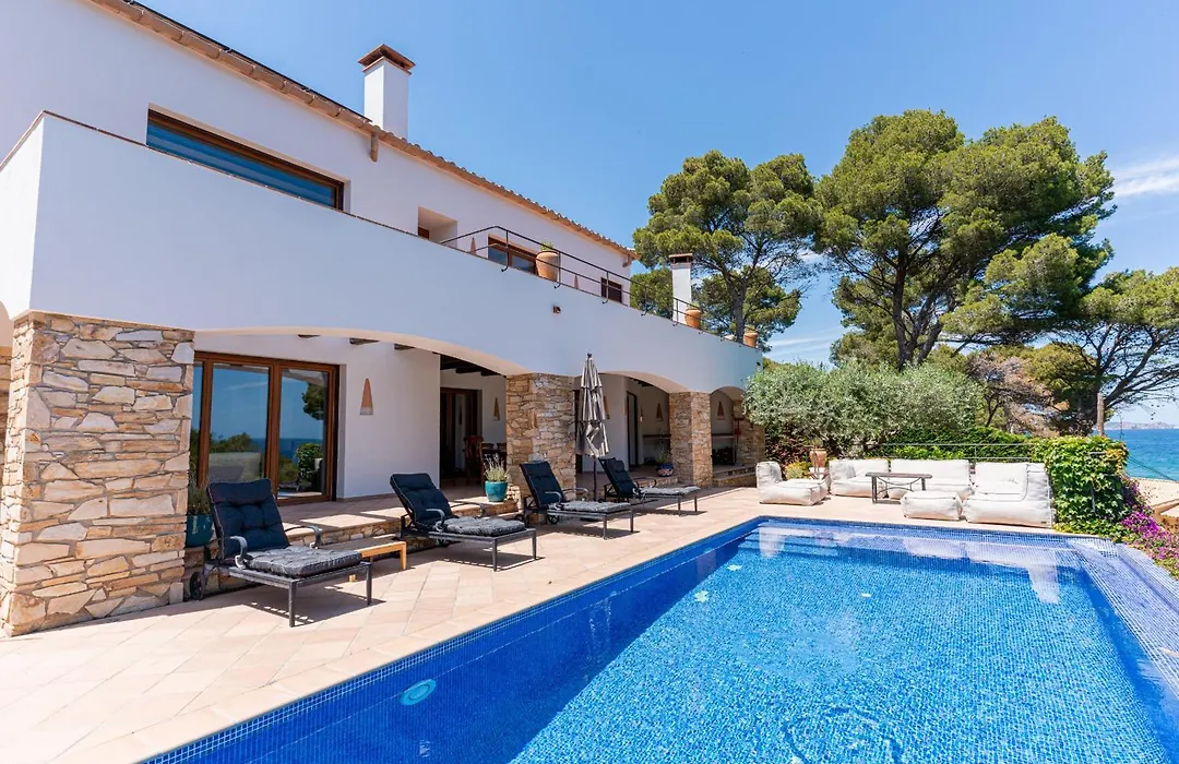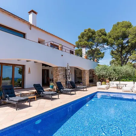 Guests can enjoy a seaside pool view from a terrace at La Isla Villa Begur, a 10-minute drive from Sa Tuna Beach.